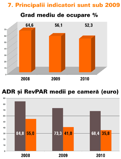 Specialistii se asteapta ca rata medie per camera sa se stabilizeze, iar gradul de ocupare sa creasca cu pana la 7%, ceea ce va genera un venit mediu per camera mai bun comparativ cu cel din ultimii ani. De asemenea, exista sansa ca si rata medie per camera sa creasca marginal, intr-un procent mic, in functie de piata si de zona geografica. Cu toate ca anul viitor este considerat a fi unul de stabilizare si consolidare a celor care au ramas in piata, sunt asteptate si inchideri, efectele crizei din ultimii doi ani resimtindu-se intotdeauna cu o oarecare intarziere. Chiar daca se vor deschide noi hoteluri, acestea nu vor aduce clienti noi, cei mai vulnerabili fiind hotelierii independenti. Mai mult, specialistii considera ca anul 2011 va fi primul an in care se vor incheia, sau vor deveni active, cele mai multe contracte de franciza sau management cu grupuri hoteliere internationale sau locale, atat pentru proprietati existente, cat si pentru proiecte noi.