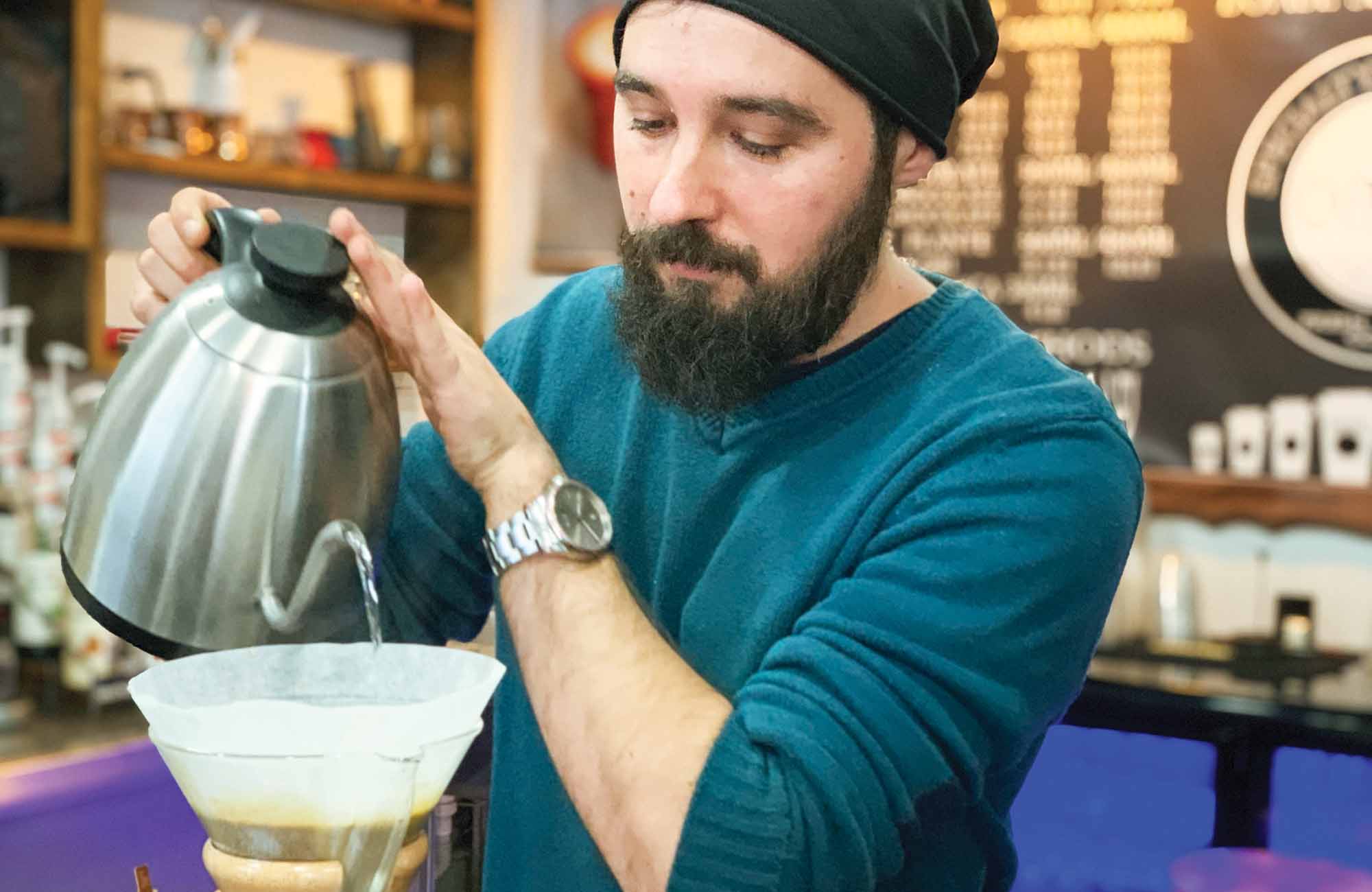 S-a ivit ocazia apoi să lucreze la o prăjitorie de cafea, care avea şi un mic coffe shop, unde a învăţat să prăjească şi a reuşit să înţeleagă ce înseamnă cafea de specialitate. Ulterior a descoperit şi SCA (Asociaţia Cafelei de Specialitate), în cadrul căreia a urmat o şcoală de barista, câştigând, în 2013 şi 2014, Campionatul Naţional de Barista.