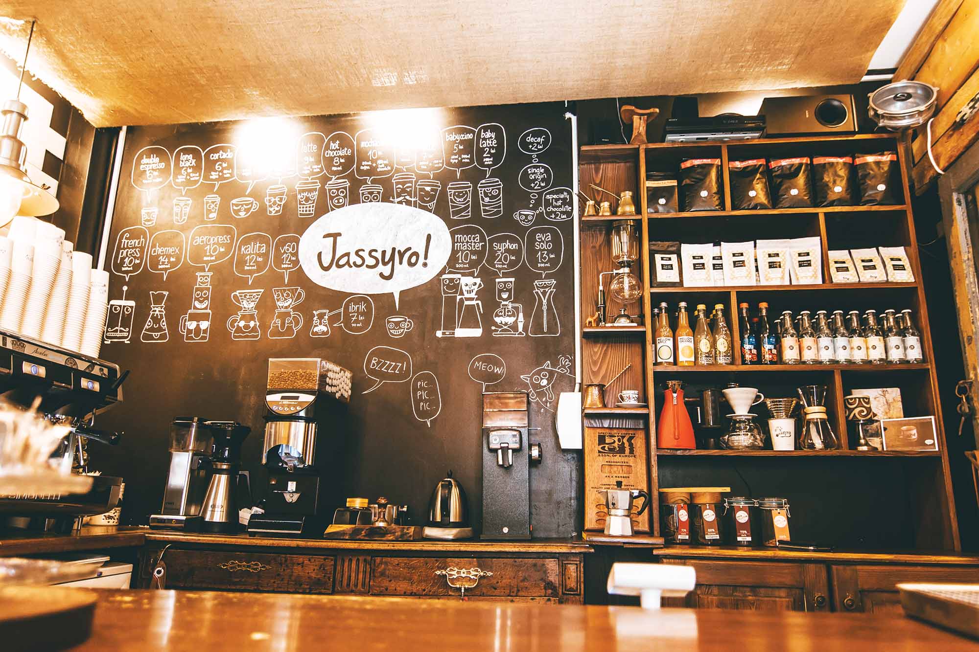 În ceea ce privește apariția Jassyro, Silviu, care acum se ocupă de partea financiară a afacerii, a fost atras spre acest domeniu și după ce a citit „Confesiunile unui cafegiu”. Eu am intrat în contact cu lumea cafelei încă din 2010, când am devenit barista într-un orășel din nordul Italiei. După un an în Italia a urmat Anglia, cred că acolo m-am gândit pentru prima dată că vreau un loc al meu. În 2012, la întoarcerea în țară, am făcut un curs de barista, împreună cu Mihai Panfil. Atunci am descoperit cafeaua de specialitate și nu a mai fost drum de întoarcere. Împreună cu Silviu am făcut și refăcut planuri de business timp de doi ani, ca apoi, în 2014, să deschidem acest loc, de numai 16 metri pătrați, care a adunat în jurul lui oameni din tot orașul și de pe tot mapamondul.