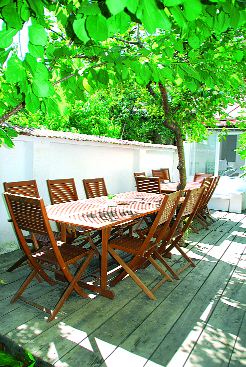 Mizand pe poezia casei, spatiul a fost compartimentat in 40 de locuri in interior, divizate in trei saloane, care ofera un sentiment de liniste si intimitate. In ceea ce priveste exteriorul, in gradina cu livada, cu o suprafata de 500 mp, care gazduieste 60 de locuri, au fost plantati gutui, meri, pruni, smochini si trandafiri, zona fiind cadrul perfect pentru o iesire in gradina, in zilele toride de vara.