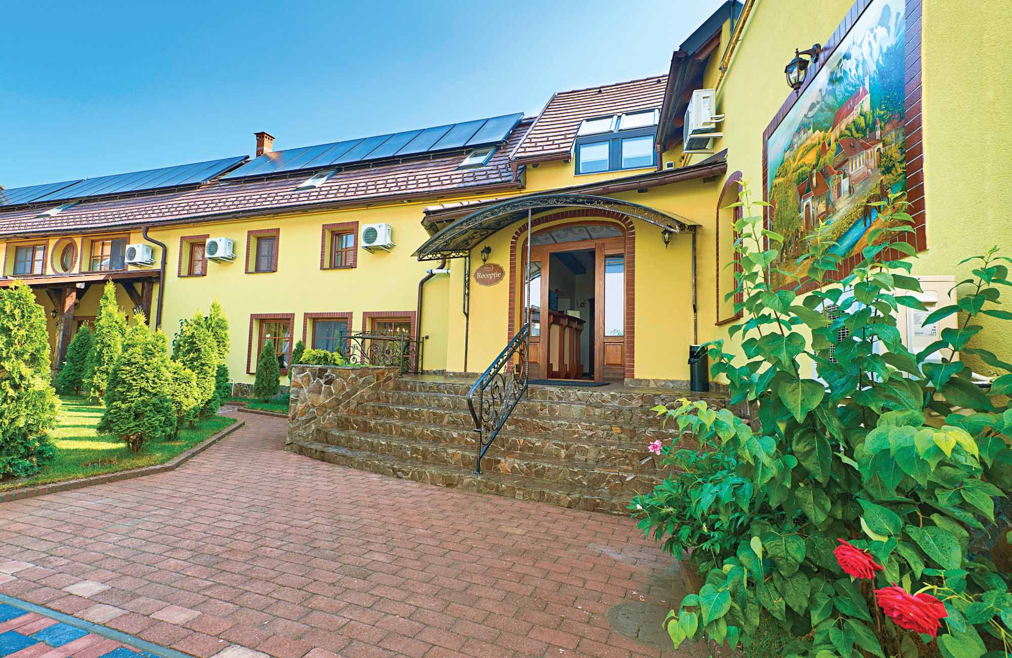 Hotelul si anexele ocupa o suprafata de 1.500 mp utili. Anexele cuprind spalatorie proprie si calcatorie, vestiare barbati-femei, salon pentru servirea micului dejun, piscina interioara subterana cu sauna, salon pentru masaj, spatiu tehnic, toalete. La etaj, livingul cuprinde un loc de relaxare la gura semineului, masa de biliard. La demisol sunt alte spatii de depozitare pentru bauturi alcoolice si materie prima necesara bucatariei centrale.