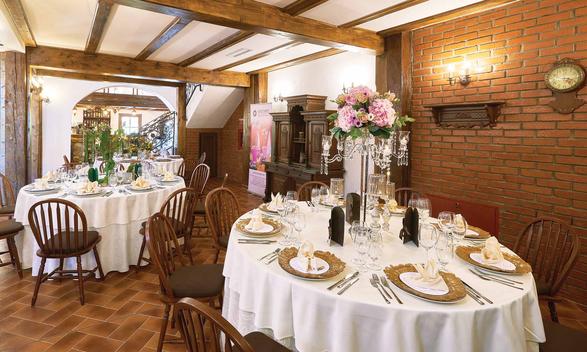– Evenimente family, precum onomastici, botezuri, aniversari, petreceri de firma, nunti. In aceasta varianta capacitatea restaurantului fiind de maxim 210 persoane. Sala este prevazuta cu un bar dotat si utilat cu echipamente profesionale, are propriul sistem de sonorizare, lumini, pian. Peretii sunt pictati cu picturi generoase care reprezinta scene din viata satenilor, atat la munca campului, cat si la petreceri cu cantec, joc si voie buna.