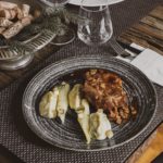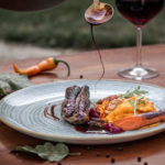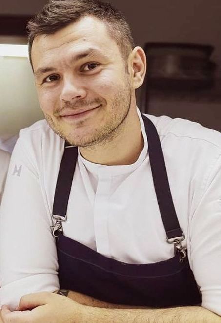 Bucătar șef la Roca Brună este tânărul Raul Vidican, care a lucrat câțiva ani în restaurante din Germania, perioadă în care a ajuns să se califice în semifinalele regionale ale competiției S.Pellegrino Young Chef 2018, concurând pentru regiunea Germania-Austria. Reîntors în țară, a colaborat cu mai multe restaurante din zona Transilvaniei, pentru ca anul trecut să se implice în proiectul Roca Brună. „Roca Brună este unul din motivele întoarcerii mele în țară, discutam cu Dan despre acest proiect încă de când lucram în Germania. Nu am stat prea mult pe gânduri să mă alătur, pentru că este un restaurant exact cum îmi doresc și este acasă. Este tot ce aveam nevoie. Meniul restaurantului este destul de simplu: se schimbă în funcție de sezon și ținem cont de ce putem achiziționa de la producătorii locali. Încet, încet am început să dezvoltăm mai mult meniul, să oferim clienților diverse combinații de mâncare, mai altfel. Un astfel de exemplu este preparatul realizat din piept și pulpe de rață gătite confit, trase apoi într-o crustă de panko, servite cu piure de migdale, ciuperci la tigaie și o cremă de vișine”, povestește Raul.