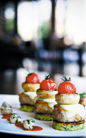 Se portioneaza muschiuletul in forma de medalion, se condimenteaza si se prajeste in unt, la tigaie, pe ambele parti, astfel incat carnea sa ramana zemoasa. Dovlecelul se feliaza in forma de disc, se amesteca impreuna cu ou, verdeata, sare, piper si apoi se prajeste. Se monteaza in forma de turn astfel: baza formata din taitei de dovlecei, peste care se asaza mignonul din muschiulet, acoperit de un strat de mozzarella, finalizand cu o ciuperca proaspata si o rosie cherry. Se gratineaza la cuptor si se serveste cu sos de rosii proaspat, cu busuioc.