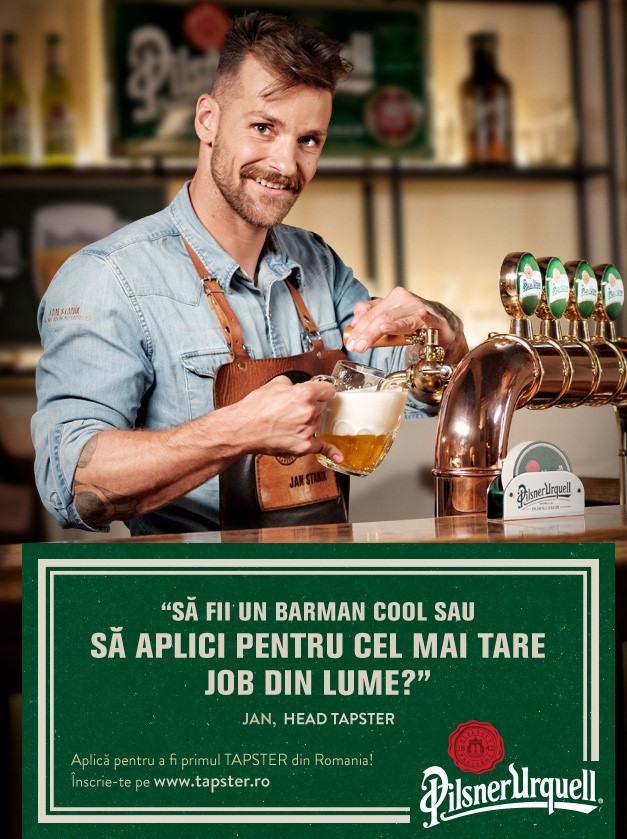 Compania Pilsner Urquell lansează o campanie de recrutare cu scopul de a găsi „tapster-ul de România”. Acesta va fi instruit și își va primi certificatul de „barman upgradat” în Plzen, Cehia, locul de origine al berii Pilsner.