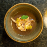 Am primit invitația din partea Ruxandrei și a lui Gabriel Gavrilescu, de la Amuse Bouche, noi ne cunoaștem de câțiva ani deja. Am decis să mă alătur proiectului din două motive: în primul rând, a fost un moment potrivit, întrucât de când am plecat de la Feitoria, în primăvară, mă aflu într-o perioadă ce-mi permite să pot experimenta și, în al doilea rând, nu am mai fost niciodată în România. Îmi doresc mereu să cunosc locuri noi, culturi noi, arome noi, astfel că atunci când a venit propunerea, am acceptat. Acum, de scos, pot spune că mă bucur foarte mult că am fost la Noua, că i-am cunoscut pe Alex și membrii echipei sale. A fost combinația perfectă.Cum a fost gândit meniul? De unde v-a venit inspirația pentru preparatele create pentru cele patru seri?