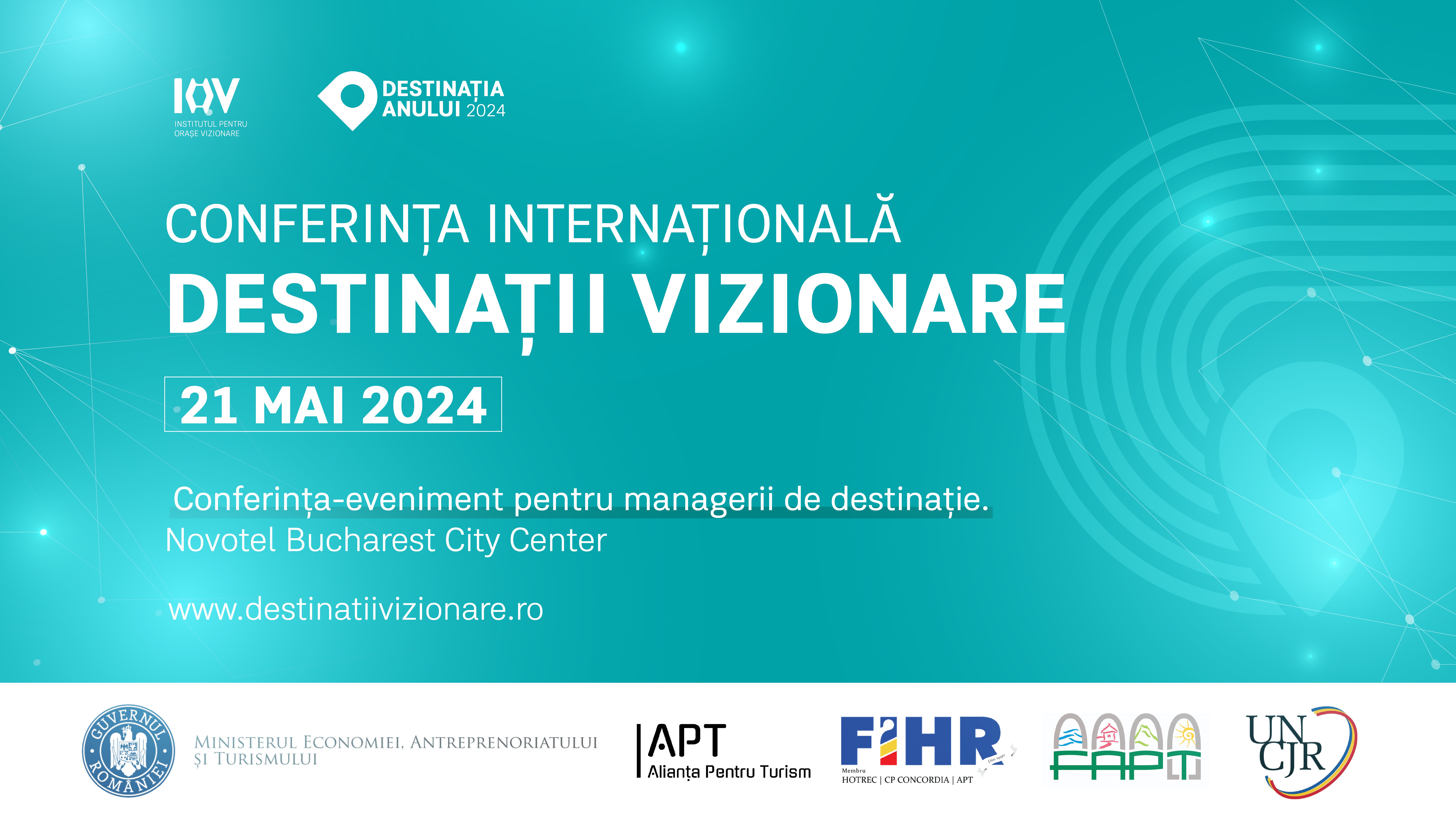 Cea de-a doua ediție a conferinței Destinații Vizionare, singurul eveniment de management și marketing de destinație din România, va avea loc pe data de 21 mai 2024, la Hotel Novotel București. Anul acesta, în premieră, conferința este urmată de Gala Destinația Anului, la Ateneul Român, o seară de celebrare a brandurilor turistice deja consacrate, câștigătoare ale competiției Destinația Anului. Cele două evenimente sunt organizate de Institutul pentru Orase Vizionare, asociație de educație și consultanță în place branding si placemaking, și Destinatia Anului, competiție de promovare a turismului intern, ce are scopul de a ajuta la construcția și afirmarea de branduri turistice puternice în România și la dezvoltarea competențelor profesionale în domeniu.