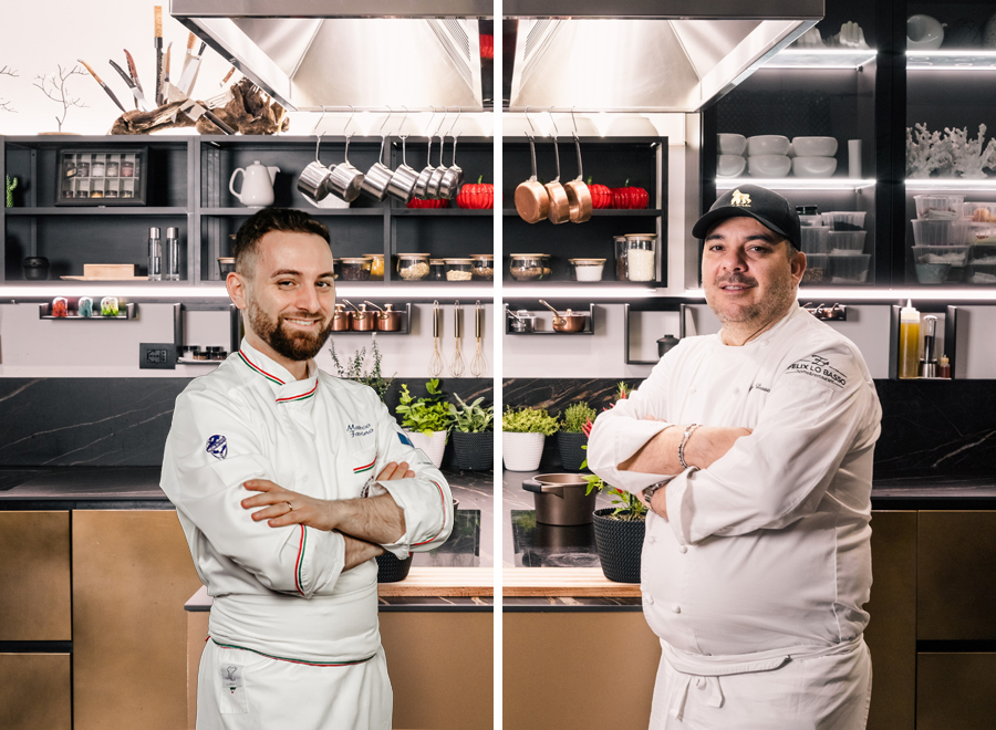 Pre-desertul este inspirat de amintirile din copilăria lui Chef Marco, „Zăpada cu Vincotto” (reducție de smochine), iar desertul semnat de Chef Felix Lo Basso, „Chicco Cremoso” cu Kimbo, va fi realizat împreună cu Pastry Chef Emilia Maxim, care i-a fost colegă la restaurantul Memorie din Trani, premiat cu o stea Michelin.