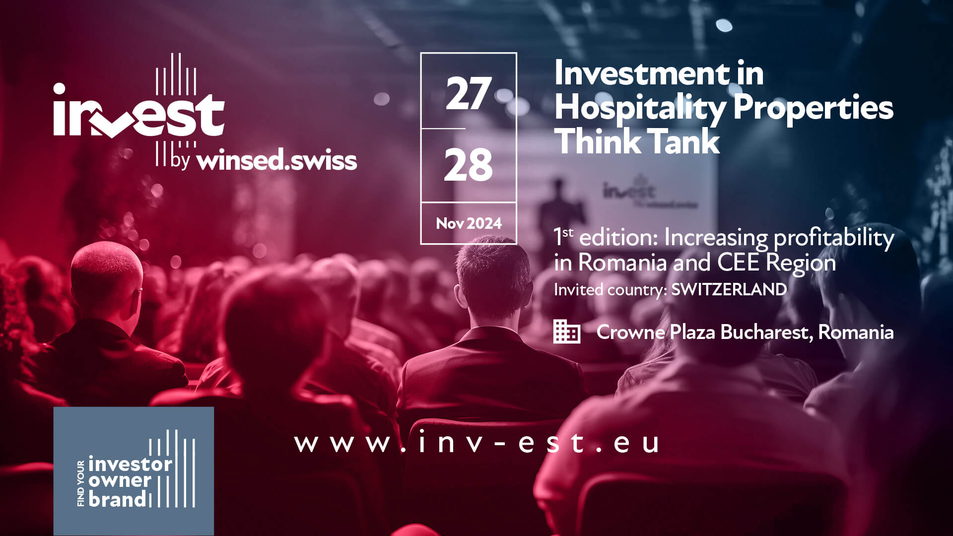 Grupul winsed.swiss, care activează în domeniile educației și soluțiilor de business în ospitalitate, va organiza în perioada 27-28 noiembrie 2024 prima ediție a Think Tankului „INVEST – Investment in Hospitality Properties in the CEE Region”, un eveniment dedicat investițiilor în dezvoltarea imobiliară din industria ospitalității. Evenimentul, care se va desfășura la Crowne Plaza Bucharest, va reuni peste 40 de experți de top din domeniul investițiilor, dezvoltatori și reprezentanți ai lanțurilor hoteliere internaționale din România și din Europa Centrală și de Est (CEE).