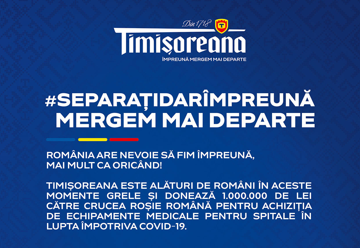„Chiar dacă în această perioadă suntem separați, putem fi împreună. Este nevoie de sprijinul, mai mic sau mai mare, al cât mai multora dintre noi, deoarece oricine poate ajuta în demersul #separațidarîmpreună. Este o bucurie pentru noi să vedem că inițiativa a fost susținută imediat de partenerii noștri de la Crucea Roșie Română și le mulțumim tuturor partenerilor care se vor alătura în continuare”, a declarat Dragoș Constantinescu – Președinte Ursus Breweries, deținătoarea mărcii Timișoreana.